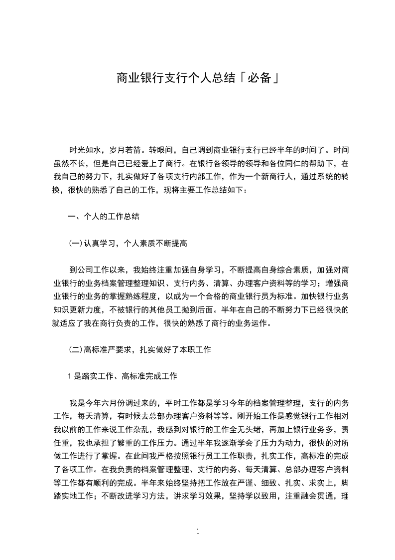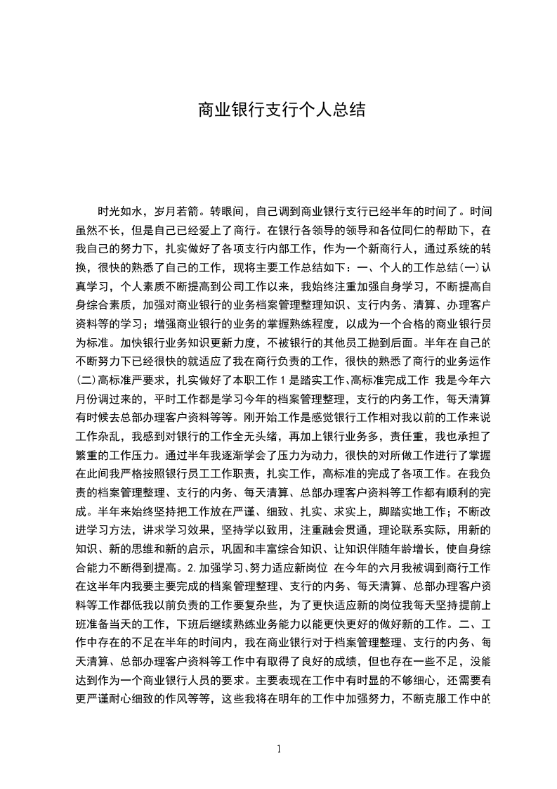 时光如水,岁月若箭。转眼间,自己调到商业银行支行已经半年的时间了。时间虽然不长,但是自己已经爱上了商行。在银行各领导的领导和各位同仁的帮助下,在我自己的努力下,扎实做好了各项支行内部工作,作为一个新商行人,通过系统的转换,很快的熟悉了自己的工作,现将主要工作总结如下: