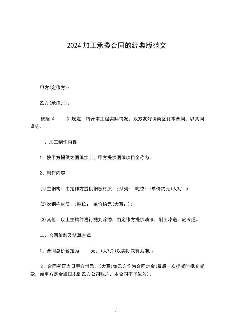 定作方委托承揽方加工_________,经双方充分协商,特订立本合同,以便共同遵守。
