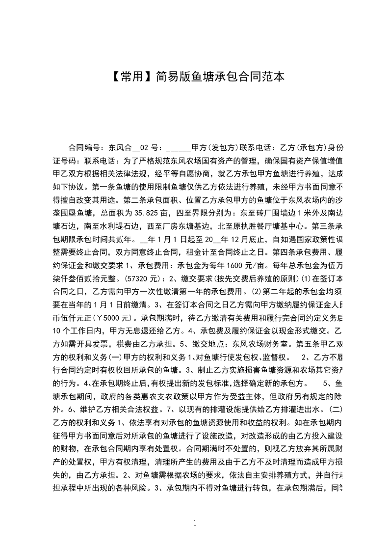 为了严格规范东风农场国有资产的管理,确保国有资产保值增值,甲乙双方根据相关法律法规,经平等自愿协商,就乙方承包甲方鱼塘进行养殖,达成如下协议。
