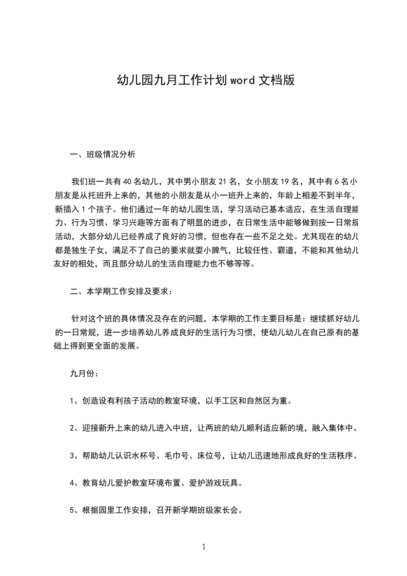 针对这个班的具体情况及存在的问题,本学期的工作主要目标是:继续抓好幼儿的一日常规,进一步培养幼儿养成良好的生活行为习惯,使幼儿幼儿在自己原有的基础上得到更全面的发展。