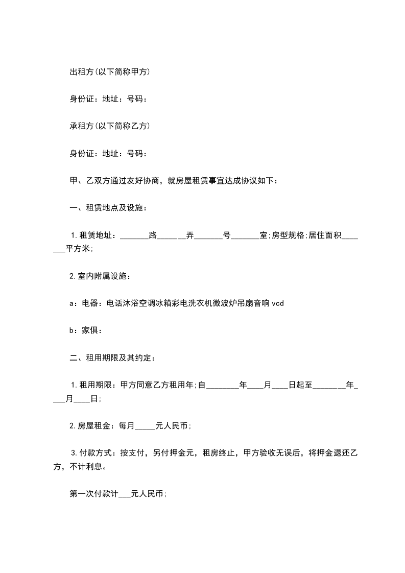 甲、乙双方通过友好协商,就房屋租赁事宜达成协议如下: