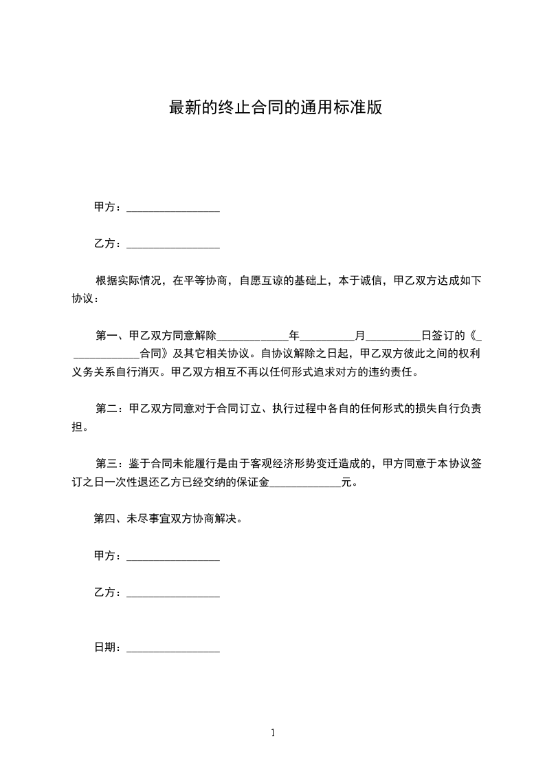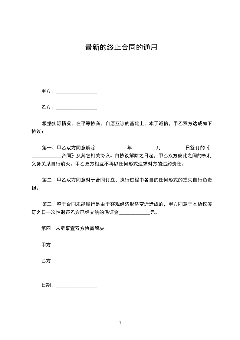 第一、甲乙双方同意解除_____________年__________月__________日签订的《_____________合同》及其它相关协议。自协议解除之日起,甲乙双方彼此之间的权利、义务关系自行消灭。甲乙双方相互不再以任何形式追求对方的违约责任。