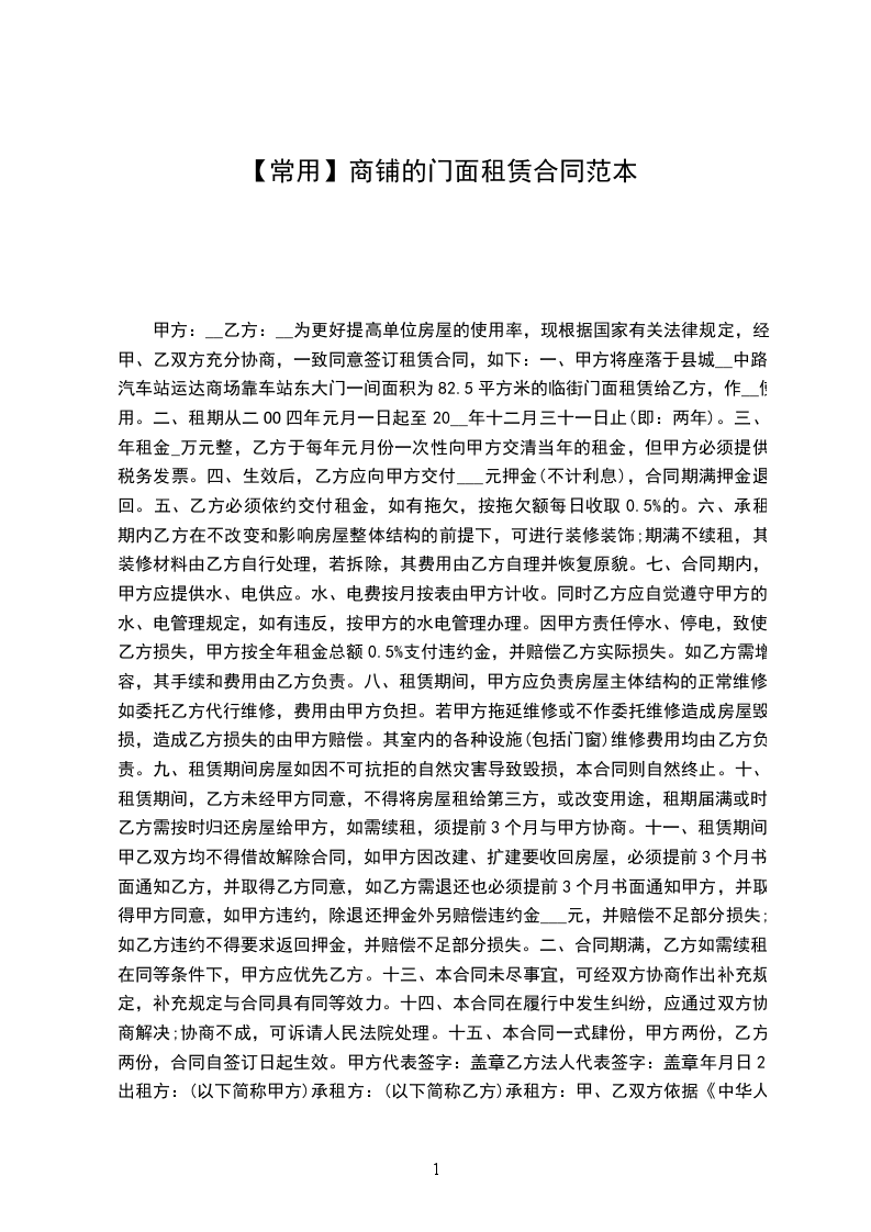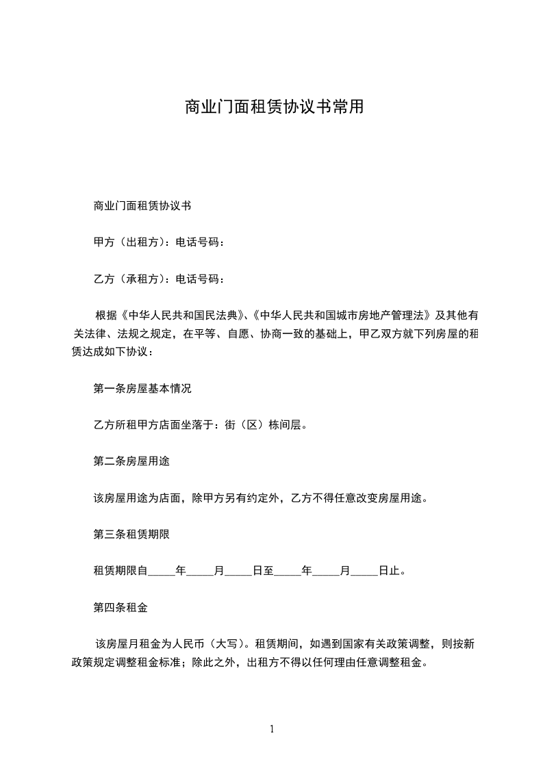 商用门面租赁合同1