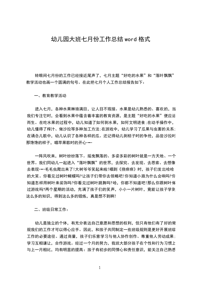 转眼间七月份的工作已经接近尾声了,七月主题“好吃的水果”和“落叶飘飘”教学活动也画一个圆满的句号。在此把七月个人工作总结报告如下: