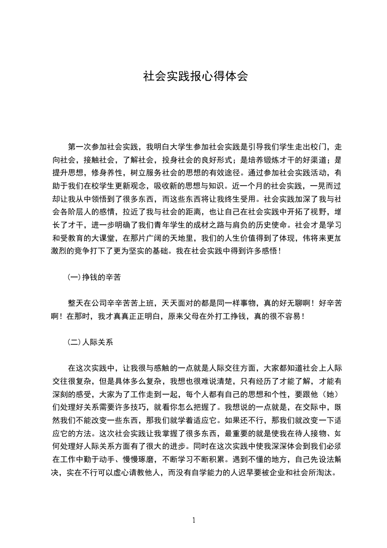学校是一个小社会,步入高中就等于步入半个社会。我们不再是象牙塔里不能受风吹雨打的花朵,通过社会实践的磨练,我们深深地认识到社会实践是一笔财富。社会是一所更能锻炼人的综合性大学,只有正确的引导我们深入社会,了解社会,服务于社会,投身到社会实践中去,才能使我们发现自身的不足,为今后走出校门,踏进社会创造良好的条件;才能使我们学有所用,在实践中成才,在服务中成长,并有效的为社会服务,体现高中生的自身价值。今后的工作中,是在过去社会实践活动经验的基础上,不断拓展社会实践活动范围,挖掘实践活动培养人才的潜力,坚持社会实践与了解国情,服务社会相结合,为国家与社会的全面发展出谋划策。坚持社会实践与专业特点相结合,为地方经济的发展贡献力量为社会创造了新的财富。