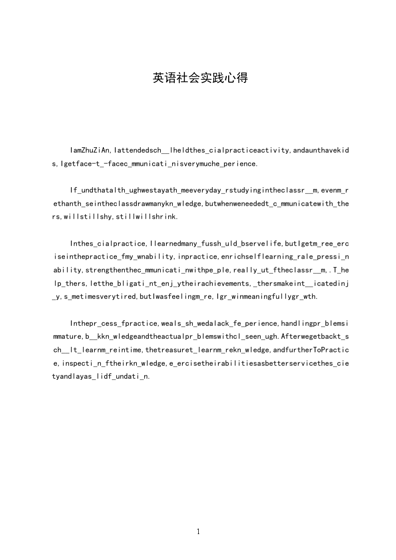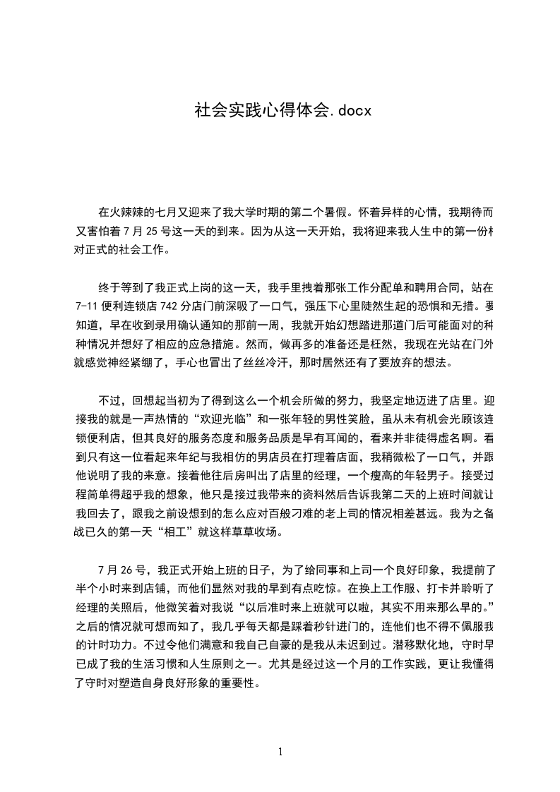 这次假期实践我以“善用知识,增加社会经验,提高实践能力,丰富假期生活”为宗旨,利用假期参加有意义的社会实践活动,接触社会,了解社会,从社会实践中检验自我。这次的社会实践收获不少。我认为以下四点是在实践中缺少的。