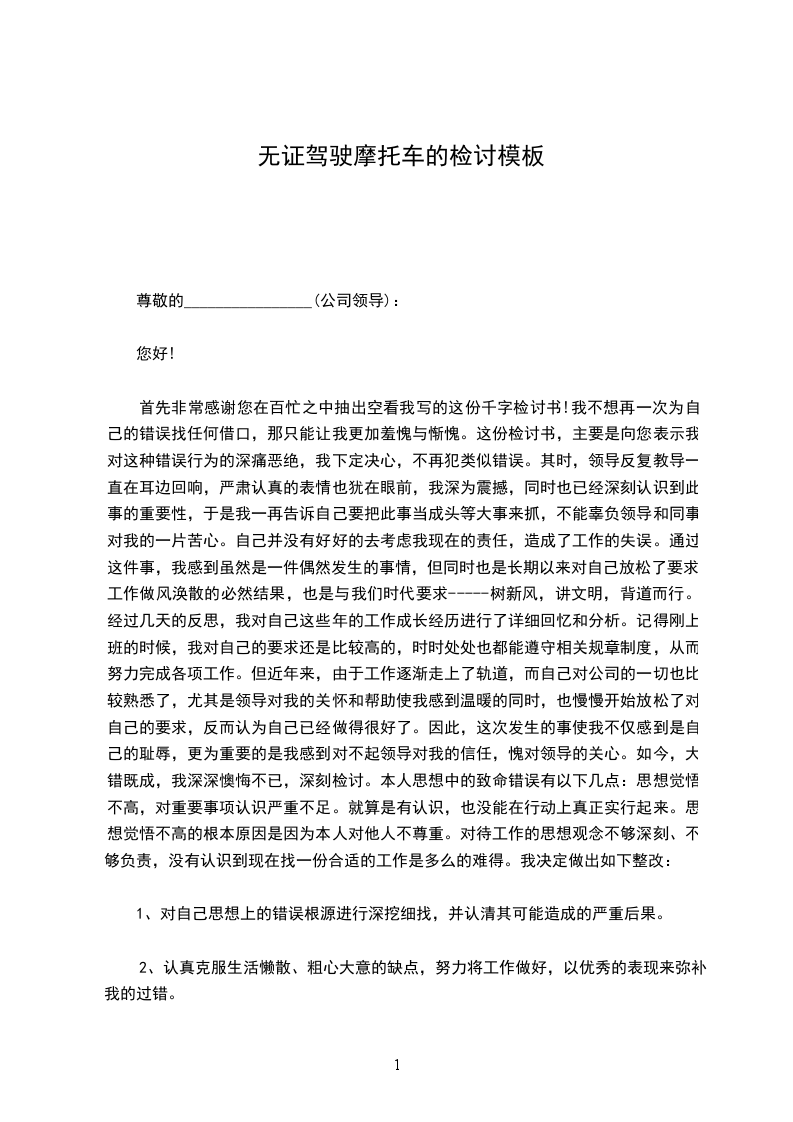 首先非常感谢您在百忙之中抽出空看我写的这份千字检讨书!我不想再一次为自己的错误找任何借口,那只能让我更加羞愧与惭愧。这份检讨书,主要是向您表示我对这种错误行为的深痛恶绝,我下定决心,不再犯类似错误。其时,领导反复教导一直在耳边回响,严肃认真的表情也犹在眼前,我深为震撼,同时也已经深刻认识到此事的重要性,于是我一再告诉自己要把此事当成头等大事来抓,不能辜负领导和同事对我的一片苦心。自己并没有好好的去考虑我现在的责任,造成了工作的失误。通过这件事,我感到虽然是一件偶然发生的事情,但同时也是长期以来对自己放松了要求,工作做风涣散的必然结果,也是与我们时代要求-----树新风,讲文明,背道而行。经过几天的反思,我对自己这些年的工作成长经历进行了详细回忆和分析。记得刚上班的时候,我对自己的要求还是比较高的,时时处处也都能遵守相关规章制度,从而努力完成各项工作。但近年来,由于工作逐渐走上了轨道,而自己对公司的一切也比较熟悉了,尤其是领导对我的关怀和帮助使我感到温暖的同时,也慢慢开始放松了对自己的要求,反而认为自己已经做得很好了。因此,这次发生的事使我不仅感到是自己的耻辱,更为重要的是我感到对不起领导对我的信任,愧对领导的关心。如今,大错既成,我深深懊悔不已,深刻检讨。本人思想中的致命错误有以下几点:思想觉悟不高,对重要事项认识严重不足。就算是有认识,也没能在行动上真正实行起来。思想觉悟不高的根本原因是因为本人对他人不尊重。对待工作的思想观念不够深刻、不够负责,没有认识到现在找一份合适的工作是多么的难得。我决定做出如下整改: