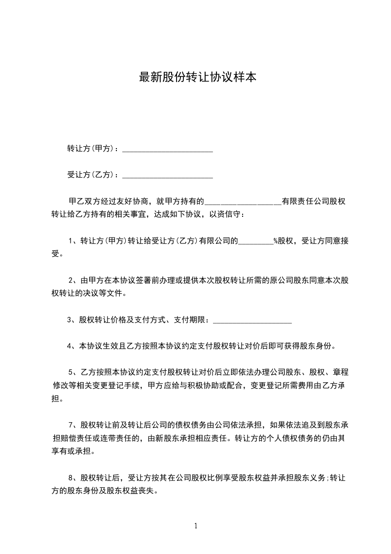 1.甲方及其他共同投资人不得私自转让或者处分共同投资的股份;