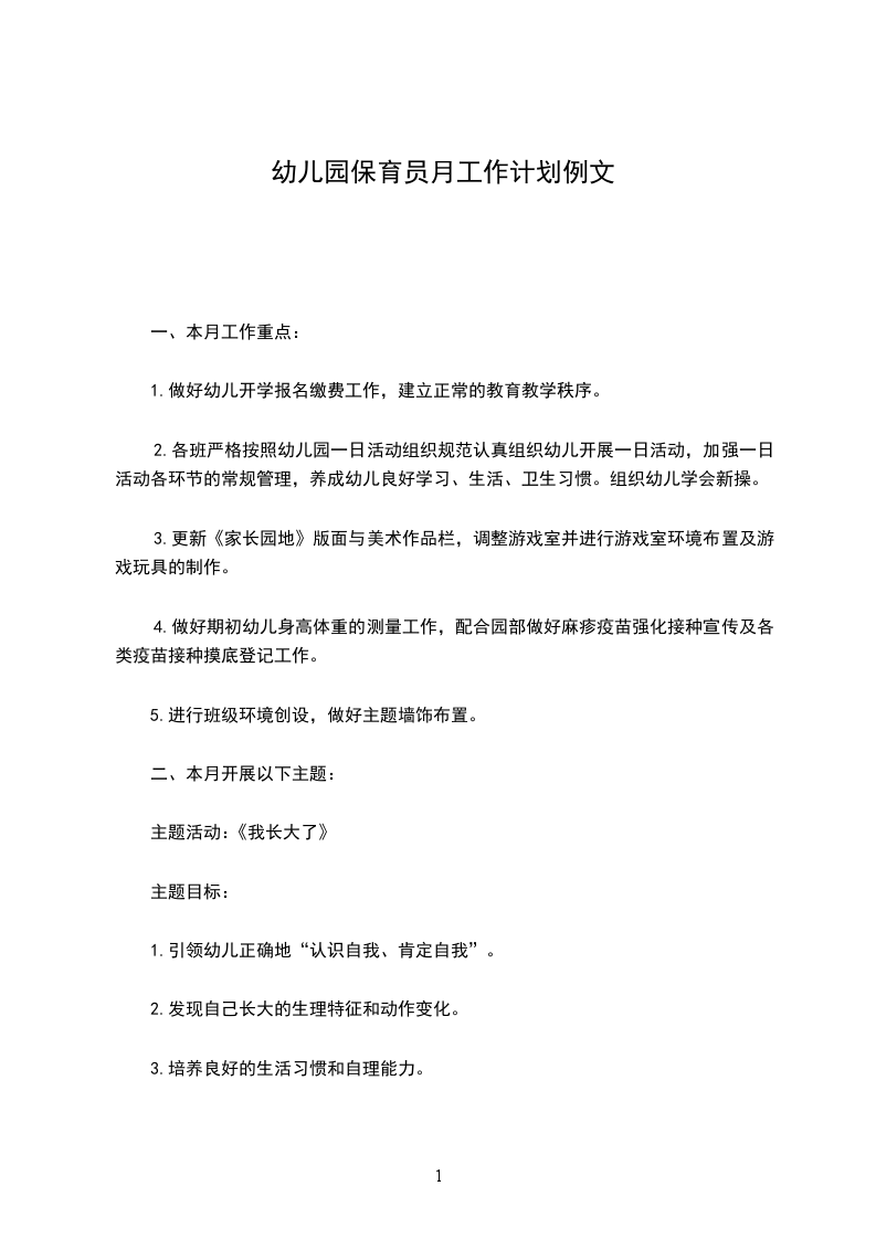 一、本月工作重点: