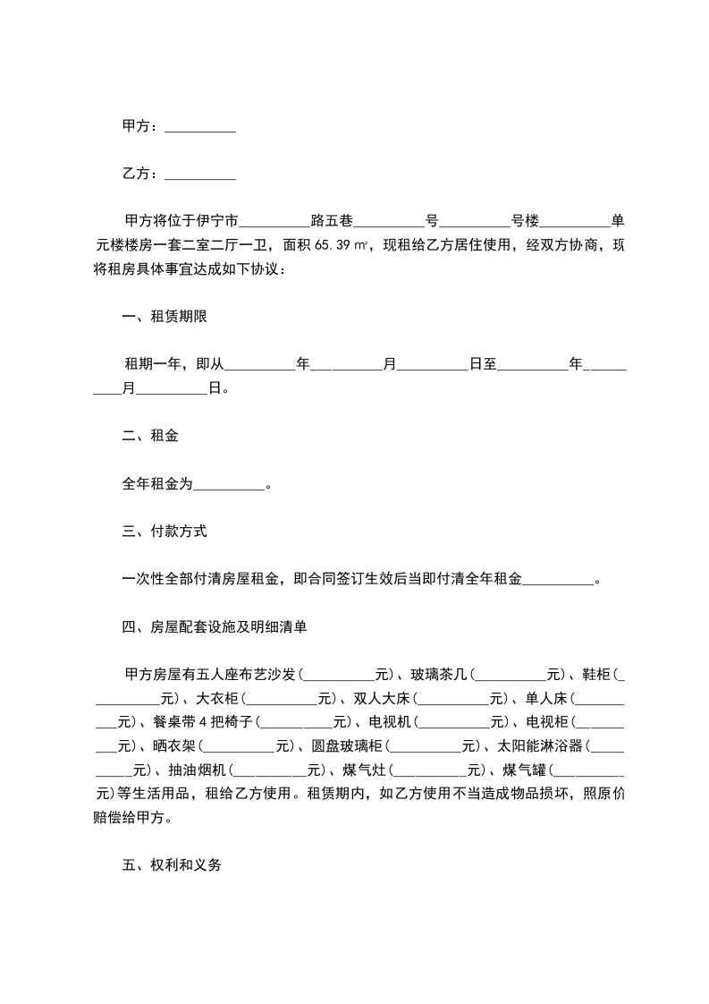 1、每年租金为人民币_________元整(_________元),经双方平等协商,预交半年租金为人民币_________元整(_________元)