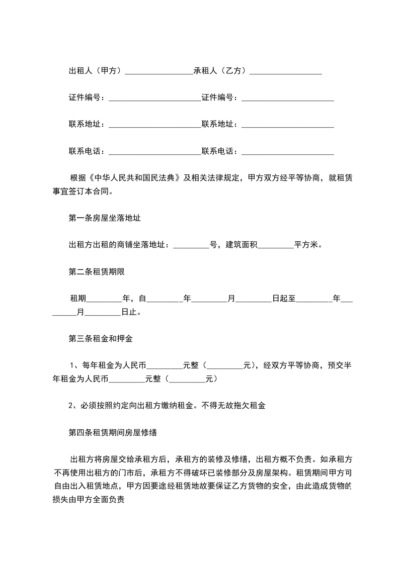 出租方出租的商铺坐落地址:_________号,建筑面积_________平方米。