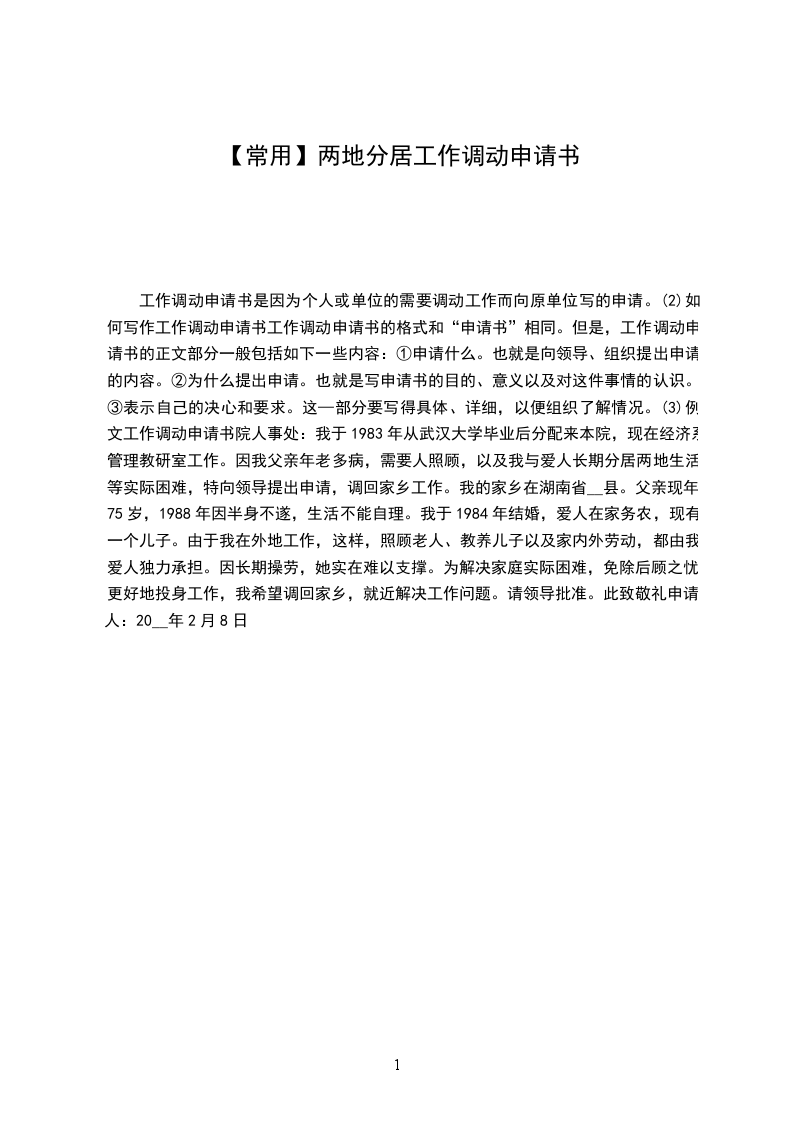工作调动申请书的格式和“申请书”相同。但是,工作调动申请书的正文部分一般包括如下一些内容: