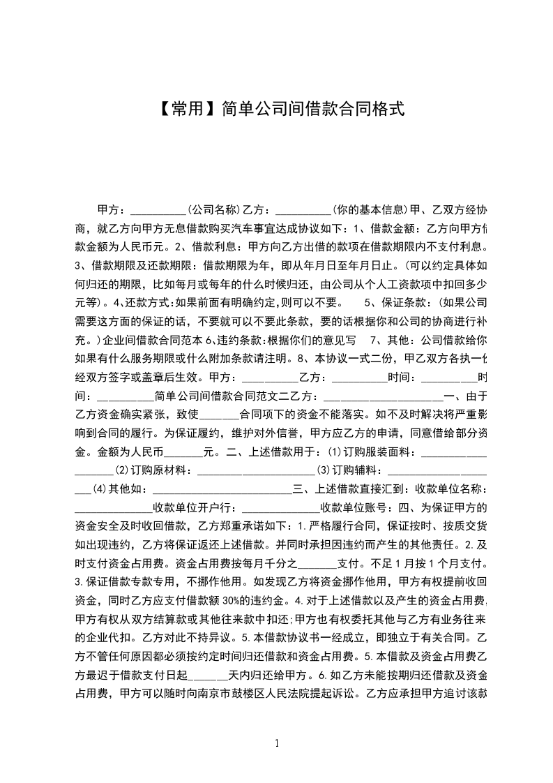 5、保证条款:(如果公司需要这方面的保证的话,不要就可以不要此条款,要的话根据你和公司的协商进行补充。)企业间借款合同范本