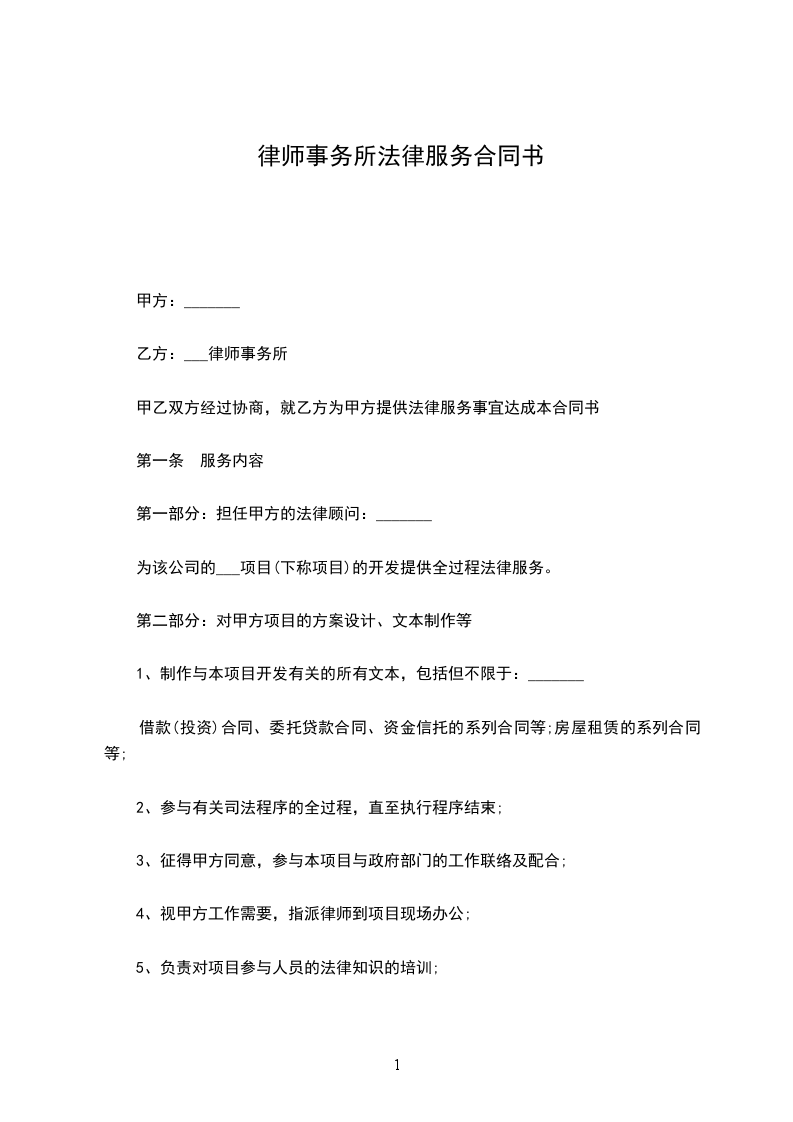 2.作为甲方提供本协议所规定之专业服务的报酬,乙方应向甲方支付一年的律师服务费_____________元。该费用应自本协议生效之日起30日内现金支付。