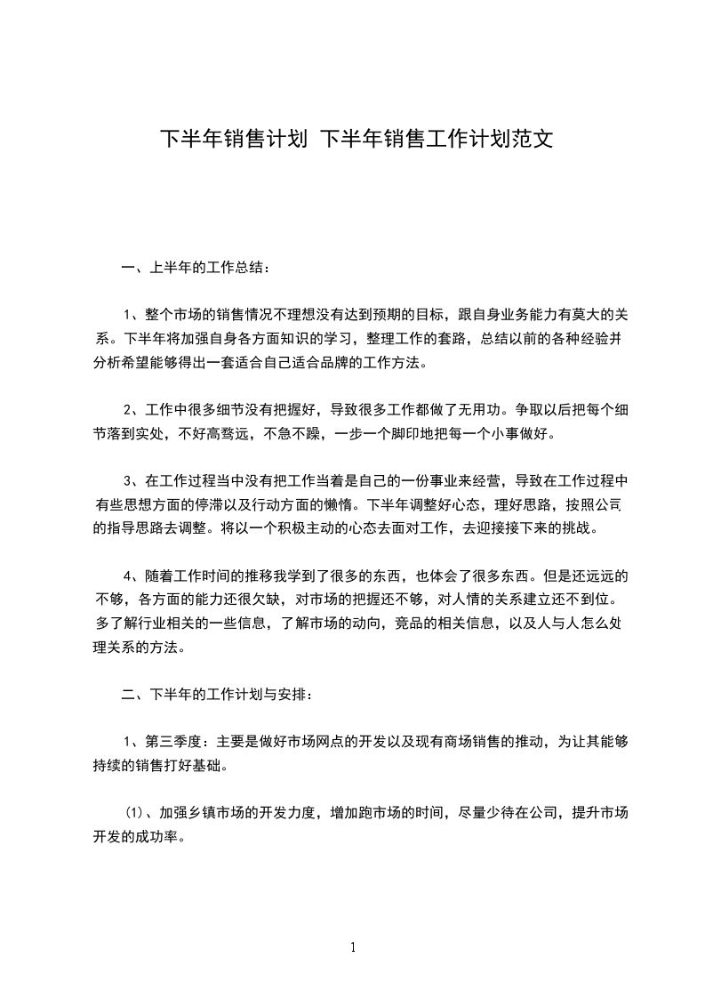 下半年销售计划2