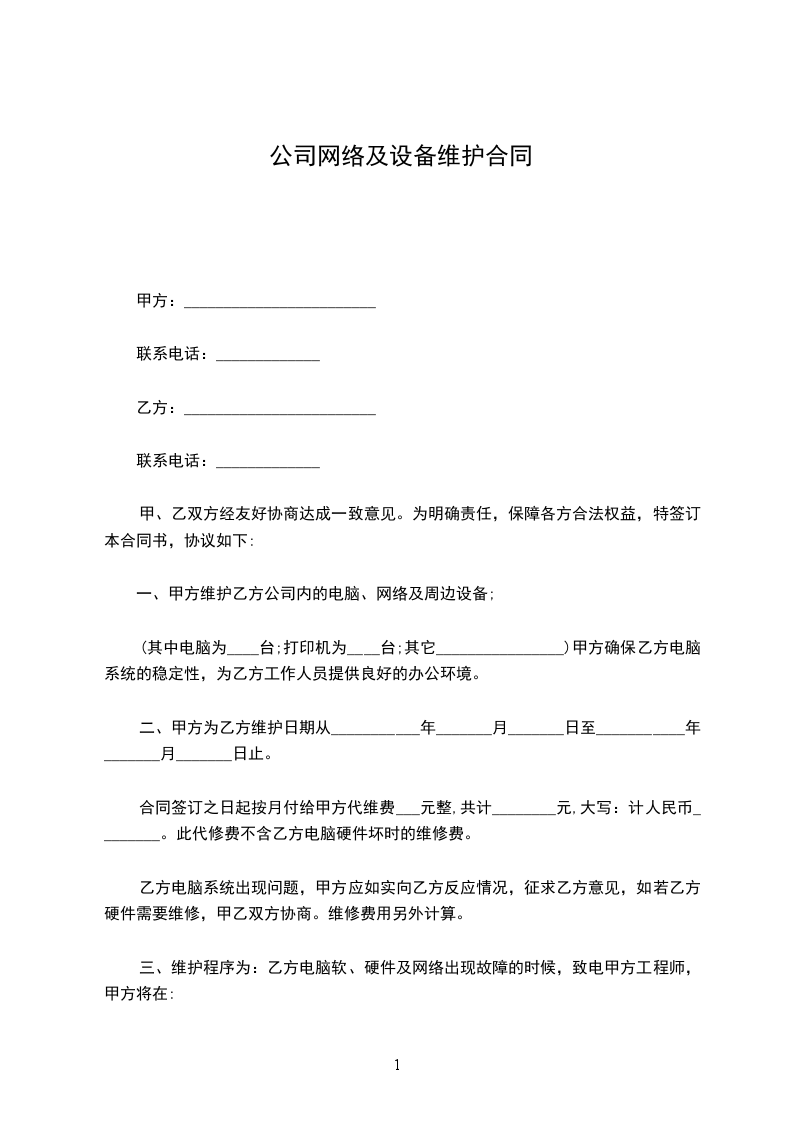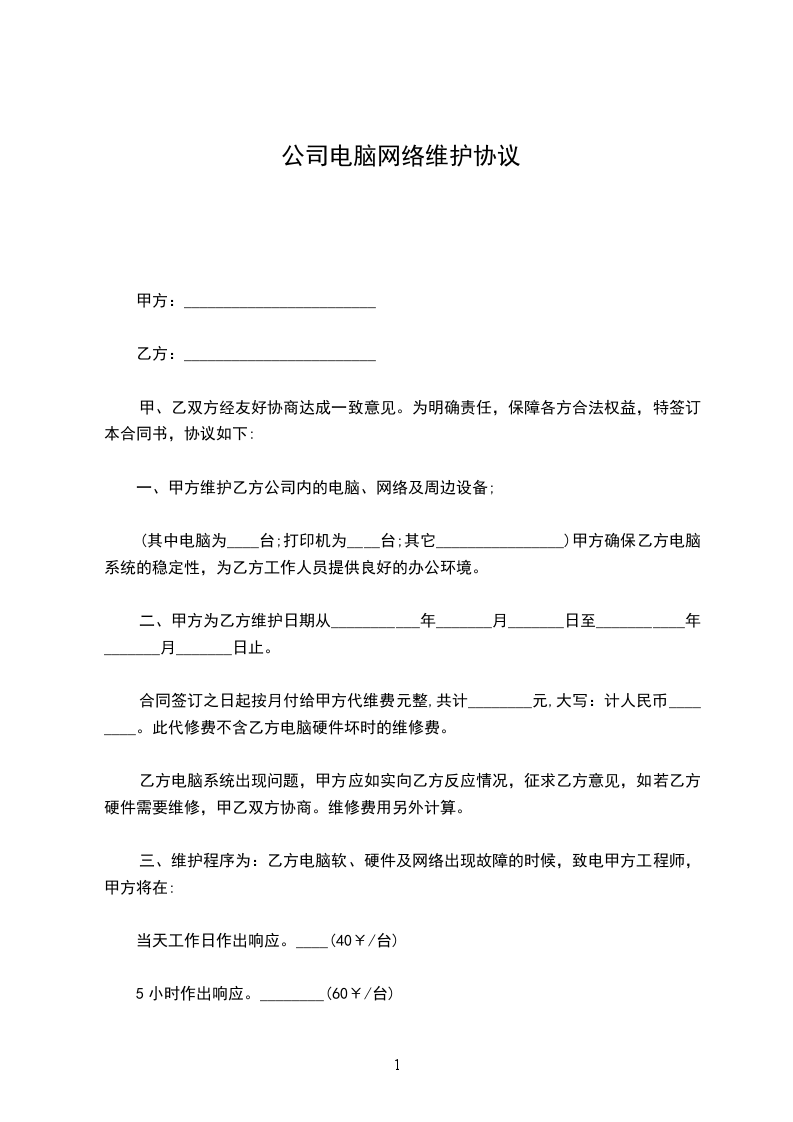 综合以上资讯,经甲乙双方协商同意,乙方每月向甲方收取维护费_______________RMB。