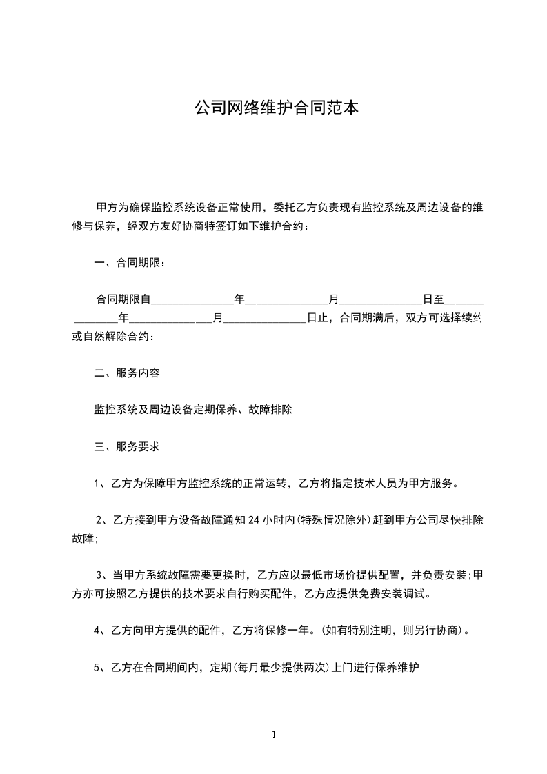 3、乙方在维护过程中需满足甲方的正当要求,保障监控系统及其他相关设备的正常运行。