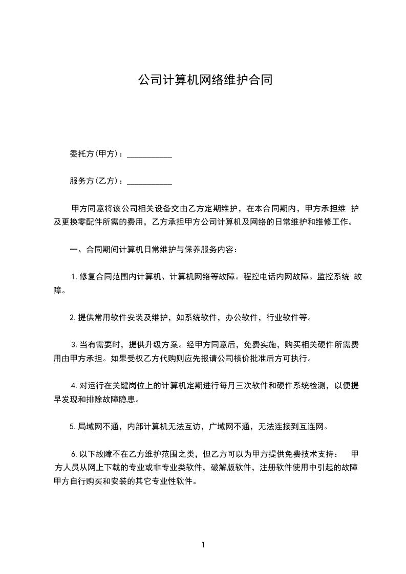 5、维护过程中,甲方有重要数据需要保存或处理,应先告之乙方,否则乙方因不知情造成重要数据丢失等不承担任何责任,由甲方自己承担。但乙方应尽力为甲方损失的数据或设备进行维修或恢复;如是由于乙方的原因造成甲方设备或数据损坏应由乙方负责维修或恢复,所需费用由乙方承担。