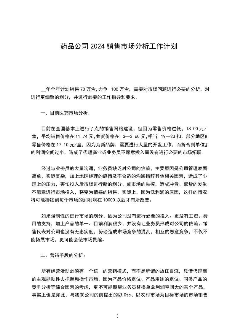 __年全年计划销售70万盒,力争100万盒,需要对市场问题进行必要的分析,对进行更细致的划分,并进行必要的工作指导和要求。