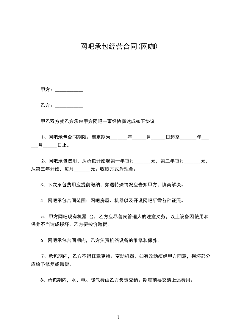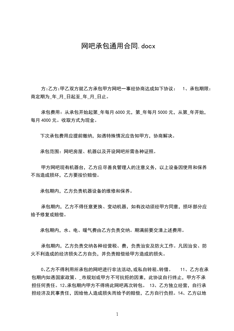 1、网吧承包合同期限:商定期为年月日起至年月日止。