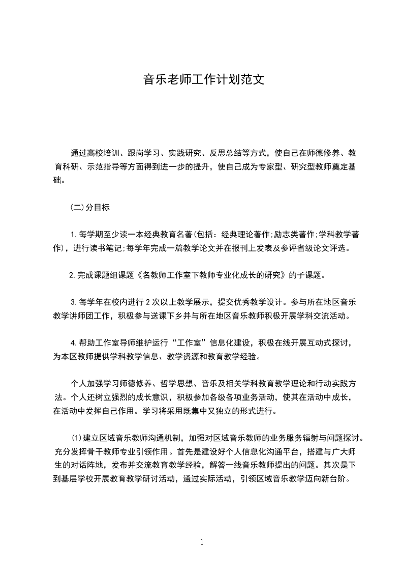 个人加强学习师德修养、哲学思想、音乐及相关学科教育教学理论和行动实践方法。个人还树立强烈的成长意识,积极参加各级各项业务活动,使其在活动中成长,在活动中发挥自己作用。学习将采用既集中又独立的形式进行。