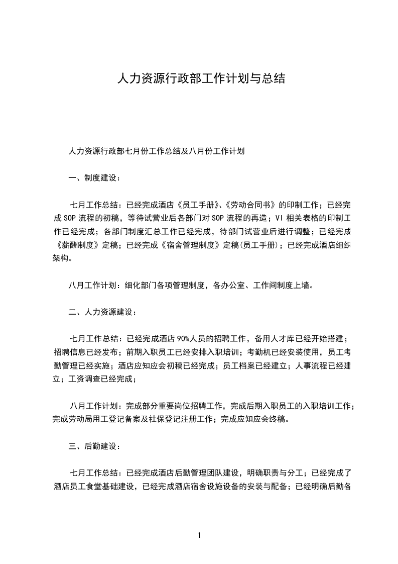 1、行政人事总务部在20__年里除做好日常管理工作外,重点做好以下几方面工作: