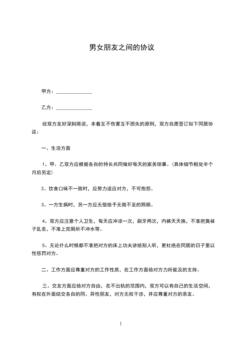 经双方友好深刻商谈,本着互不伤害互不损失的原则,双方自愿签订如下同居协议: