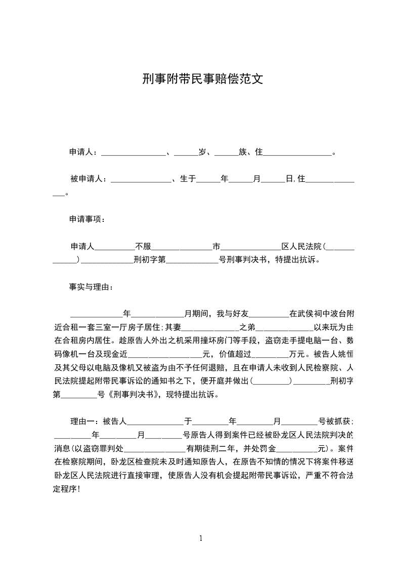 _____________年_____________月期间,我与好友__________在武侯祠中波台附近合租一套三室一厅房子居住;其妻______________之弟______________以来玩为由在合租房内居住。趁原告人外出之机采用撞坏房门等手段,盗窃走手提电脑一台、数码像机一台及现金近__________________元,价值超过_________万元。被告人姚恒及其父母以电脑及像机又被盗为由不予任何退赔,且在申请人未收到人民检察院、人民法院提起附带民事诉讼的通知书之下,便开庭并做出(_________)_________刑初字第_________号《刑事判决书》,现特提出抗诉。