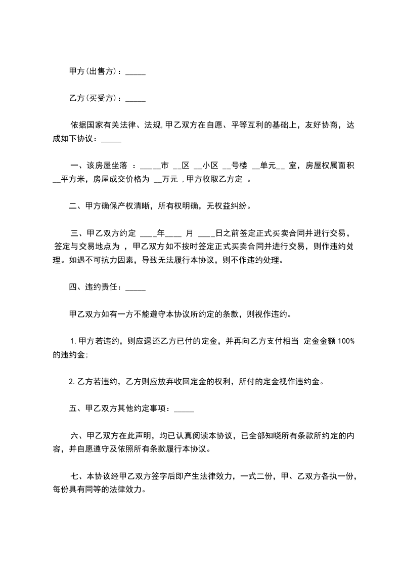 第二条、双方一致同意该房屋成交价格为人民币___________元。此房价为净价,税费由乙方承担,房屋内保留设施设备清单如下
