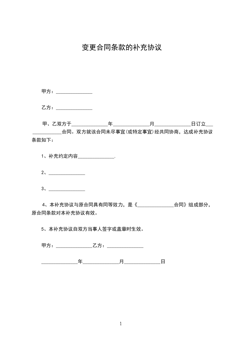 甲、乙双方于_______________年_______________月_______________日订立_______________合同。双方就该合同未尽事宜(或特定事宜)经共同协商,达成补充协议条款如下: