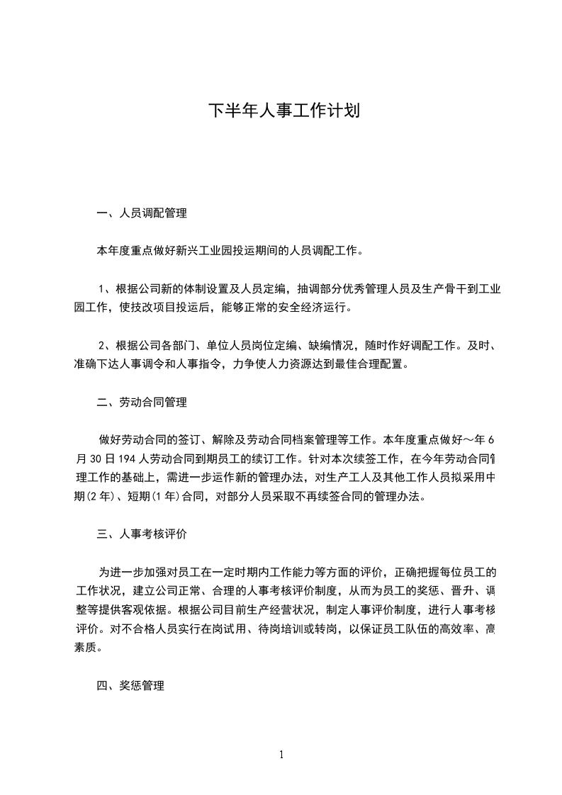 做好劳动合同的签订、解除及劳动合同档案管理等工作。本年度重点做好~年6月30日194人劳动合同到期员工的续订工作。针对本次续签工作,在今年劳动合同管理工作的基础上,需进一步运作新的管理办法,对生产工人及其他工作人员拟采用中期(2年)、短期(1年)合同,对部分人员采取不再续签合同的管理办法。