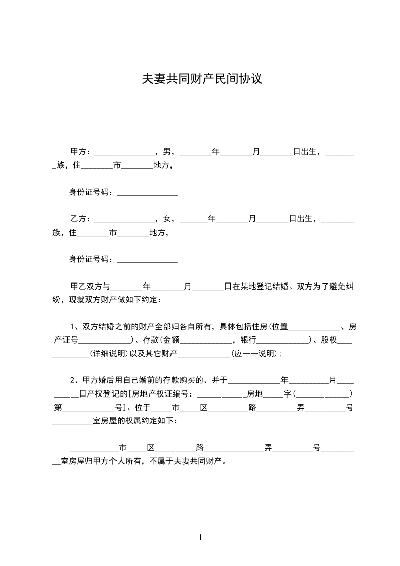 ____________市_____区__________路_______________弄__________号__________室房屋归甲方个人所有,不属于夫妻共同财产。