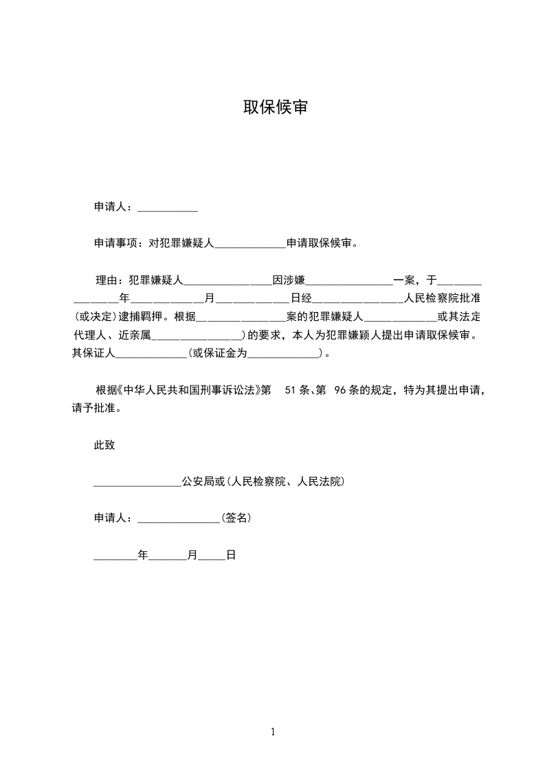 申请事项:对犯罪嫌疑人_____________申请取保候审。