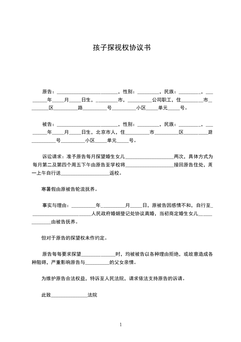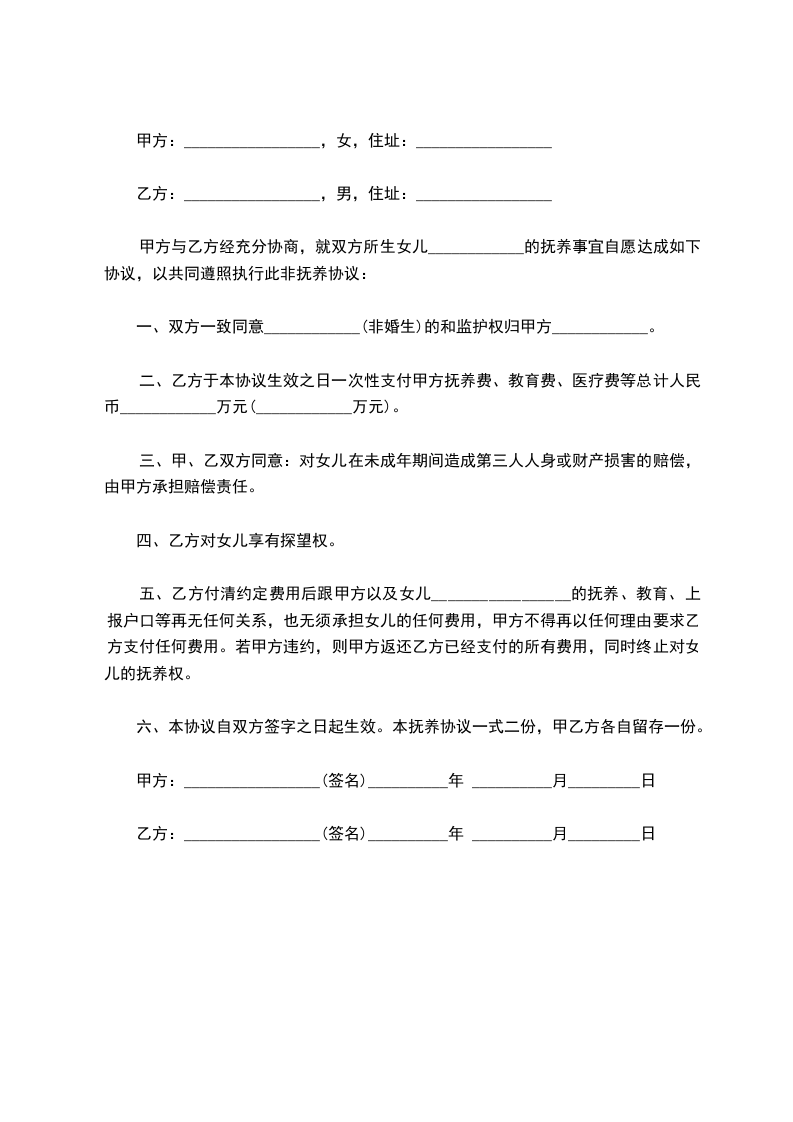 协议人:_______________(姓名、性别、出生年月、民族、单位、住址)
