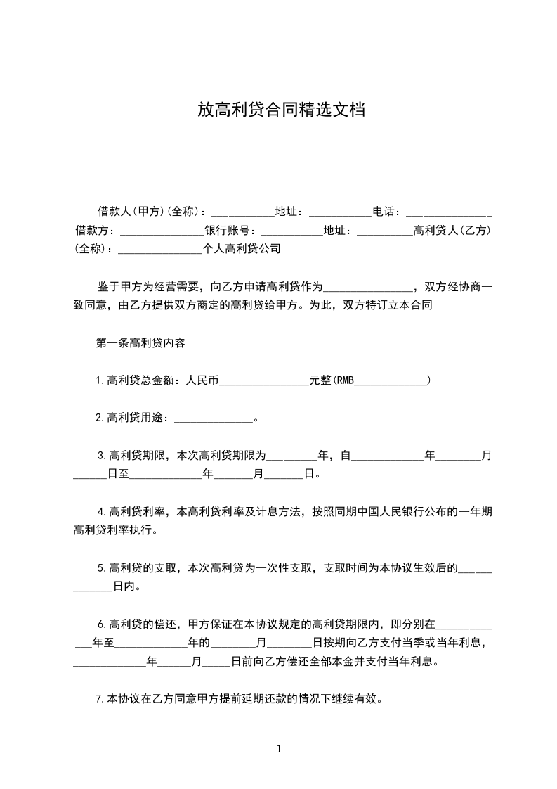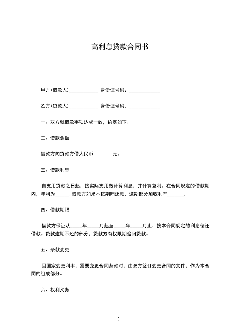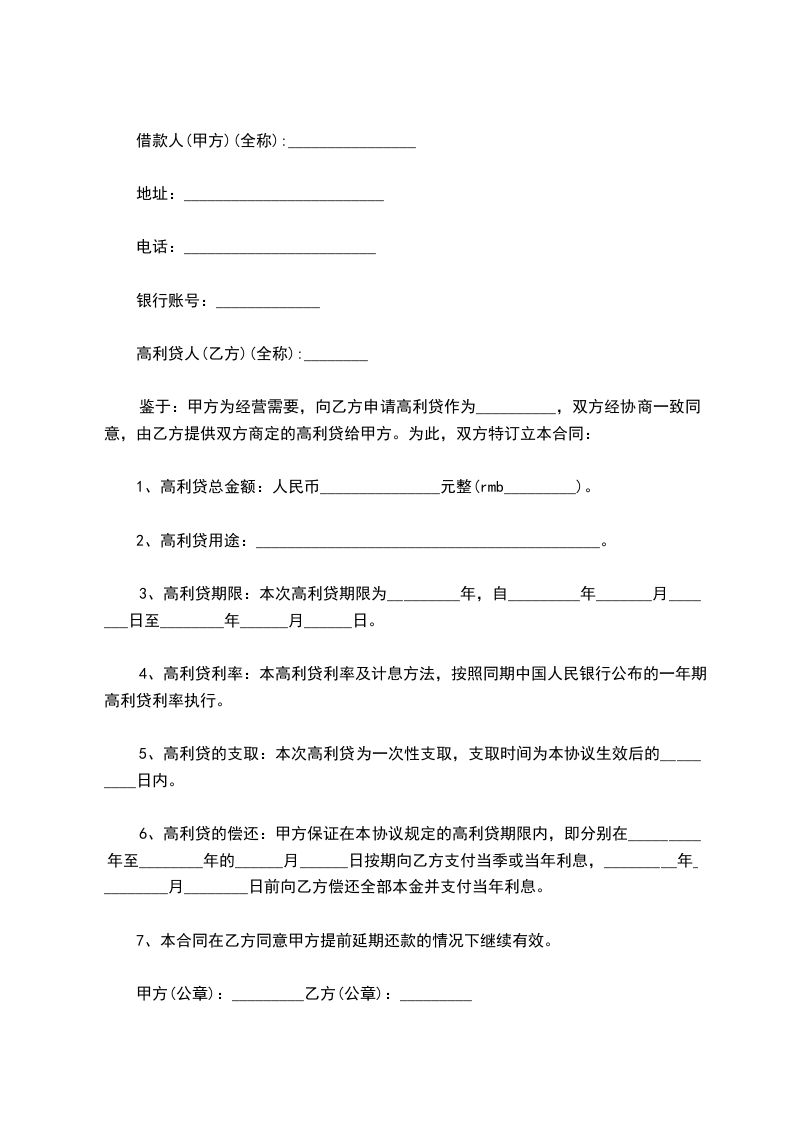 3.高利贷期限,本次高利贷期限为_________年,自_____________年________月______日至_____________年_______月_______日。