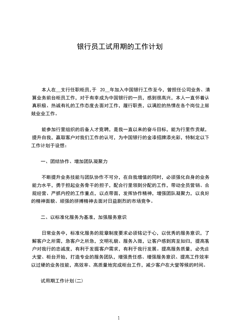 试用期工作计划(二)