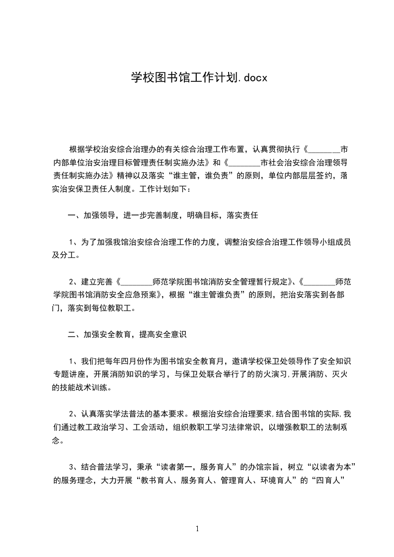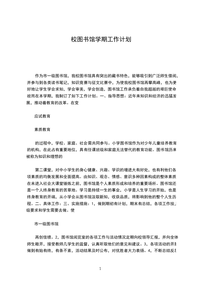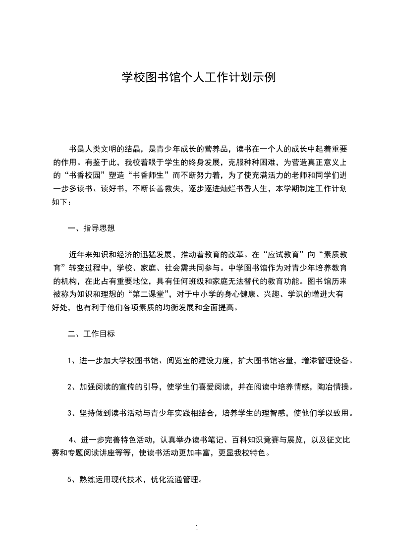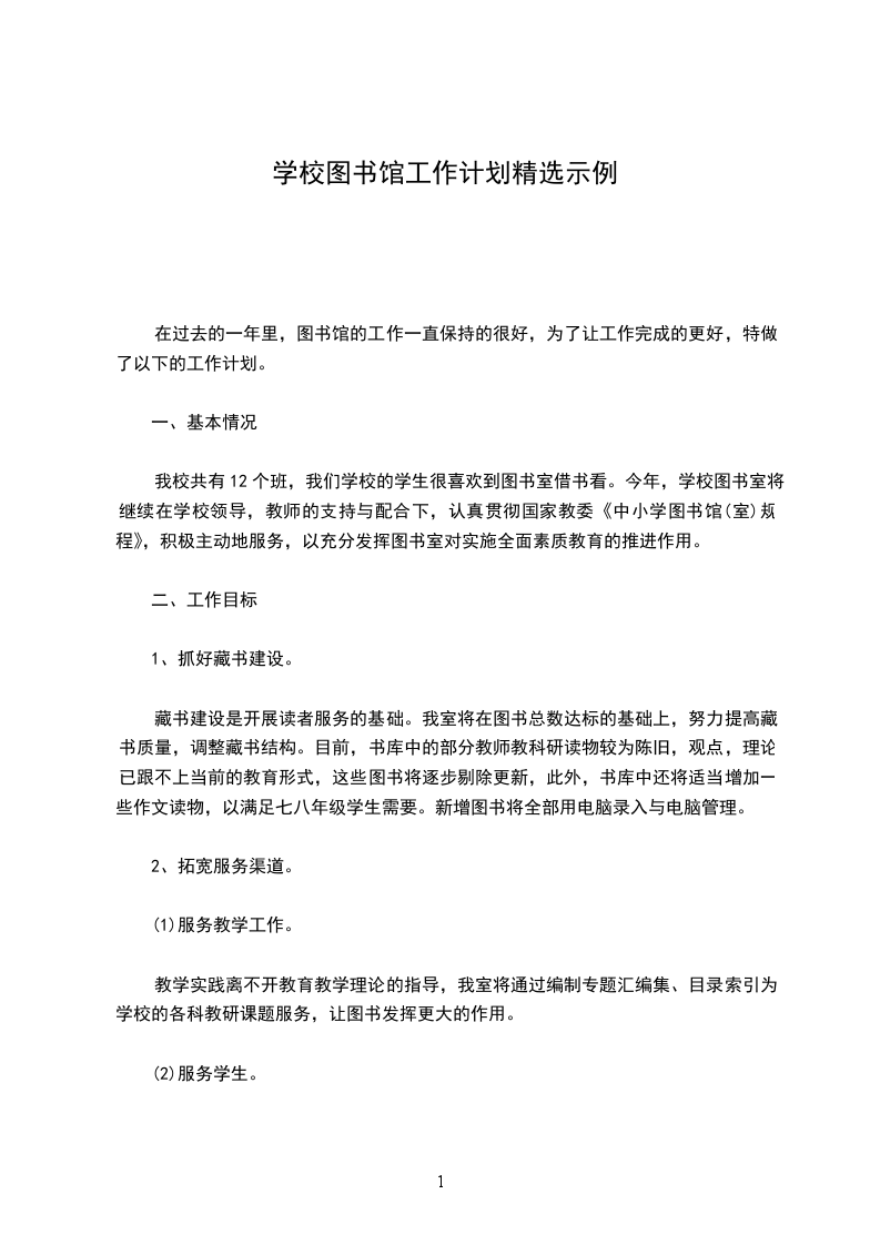 1、制订图书室工作计划