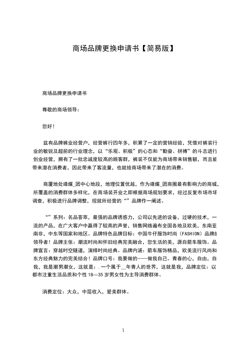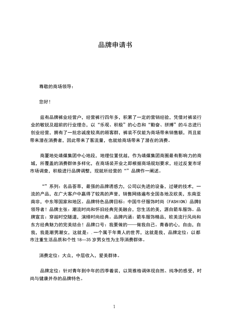 商厦地处靖煤集团中心地段,地理位置优越,作为靖煤集团商圈最有影响力的商城,所覆盖的消费群体多样化,在商场装开业之即根据商场规划要求,经过反复市场市场调查,积极进行品牌调整,现就所经营的“”品牌作一阐述。
