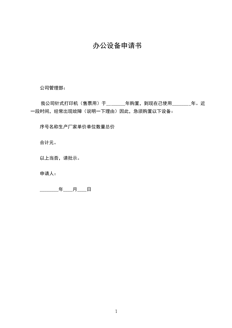 我公司针式打印机(售票用)于________年购置,到现在己使用________年。近一段时间,经常出现故障(说明一下理由)因此,急须购置以下设备: