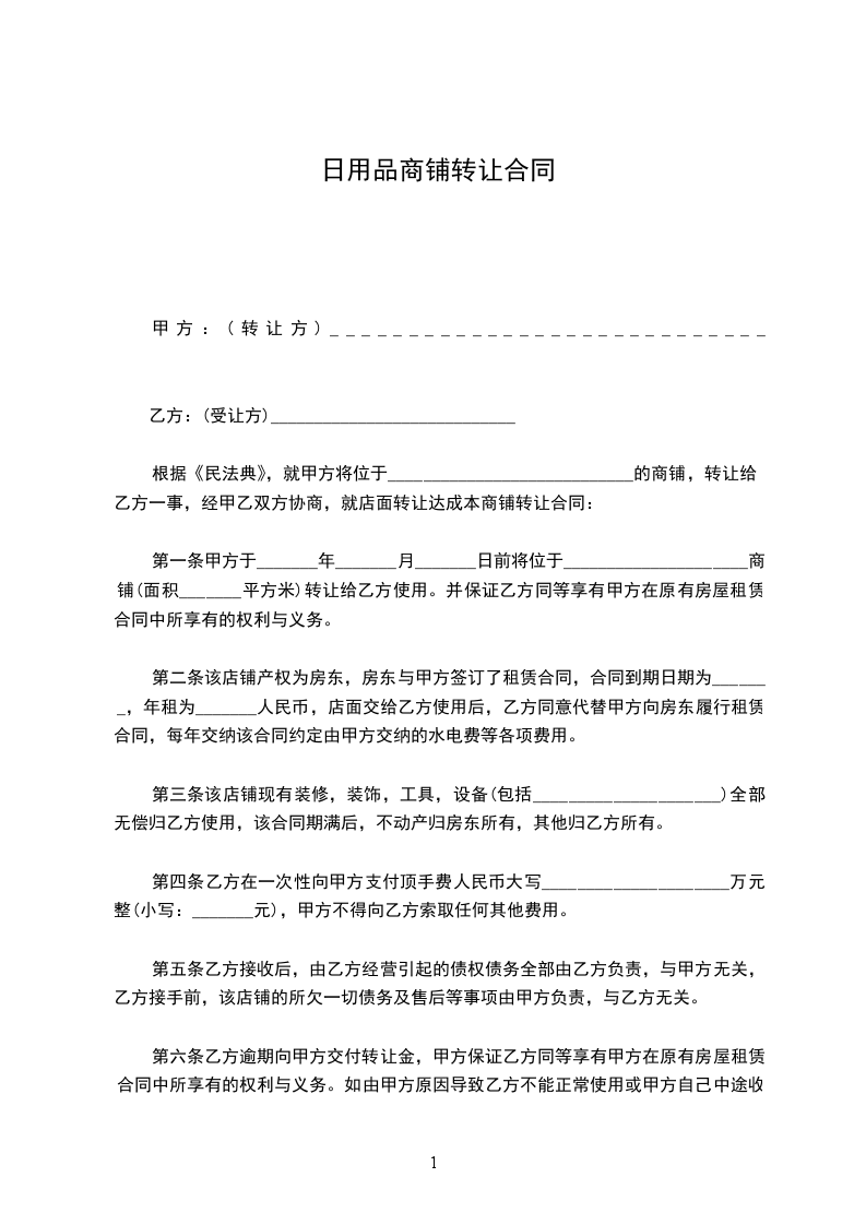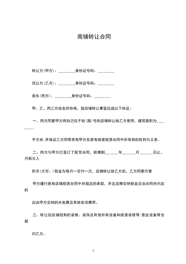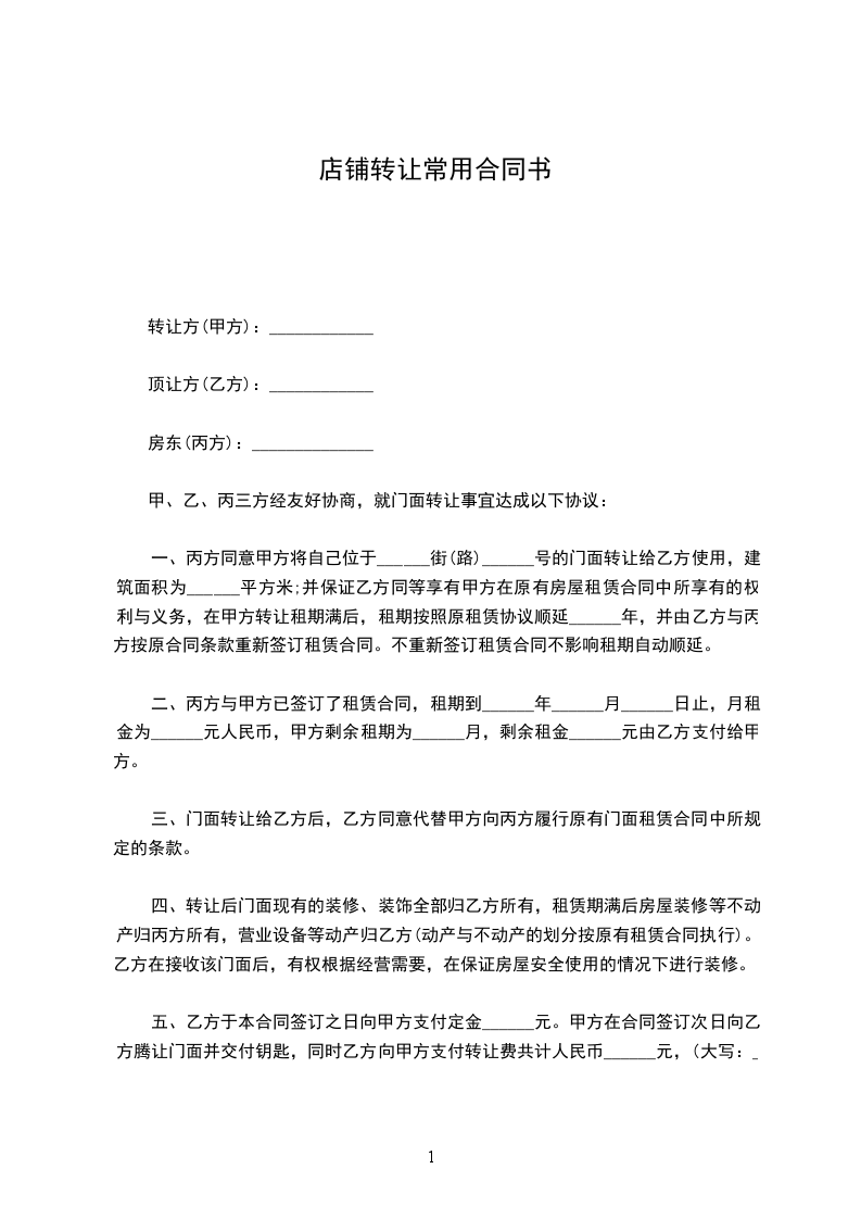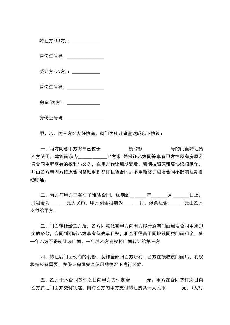 甲乙双方经友好协商,就店铺转让达成下列协议,并共同遵守: