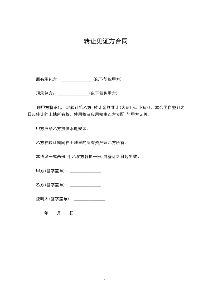 原有承包方:_______________(以下简称甲方)