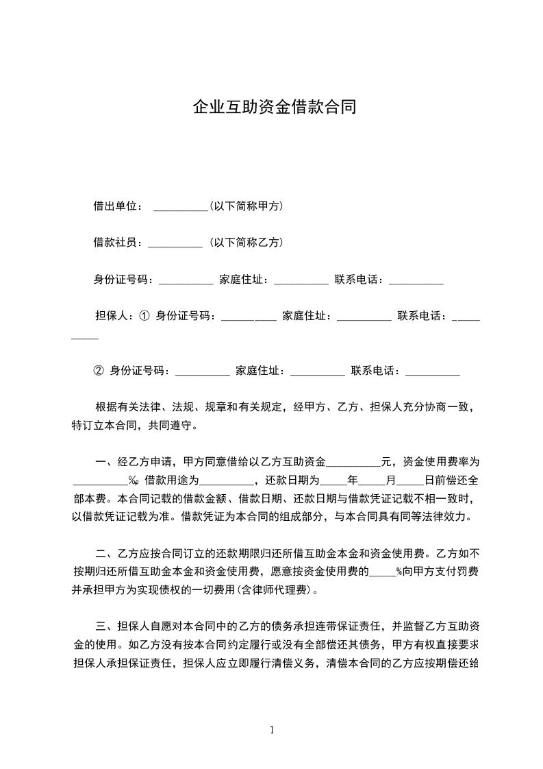 一、经乙方申请,甲方同意借给以乙方互助资金元(大写),资金使用费率为月,借款用途为,借款期限为年月日至年月日。本合同记载的借款金额、借款日期、还款日期与借款凭证记载不相一致时,以借款凭证记载为准。借款凭证为本合同的组成部分,与本合同具有同等法律效力。