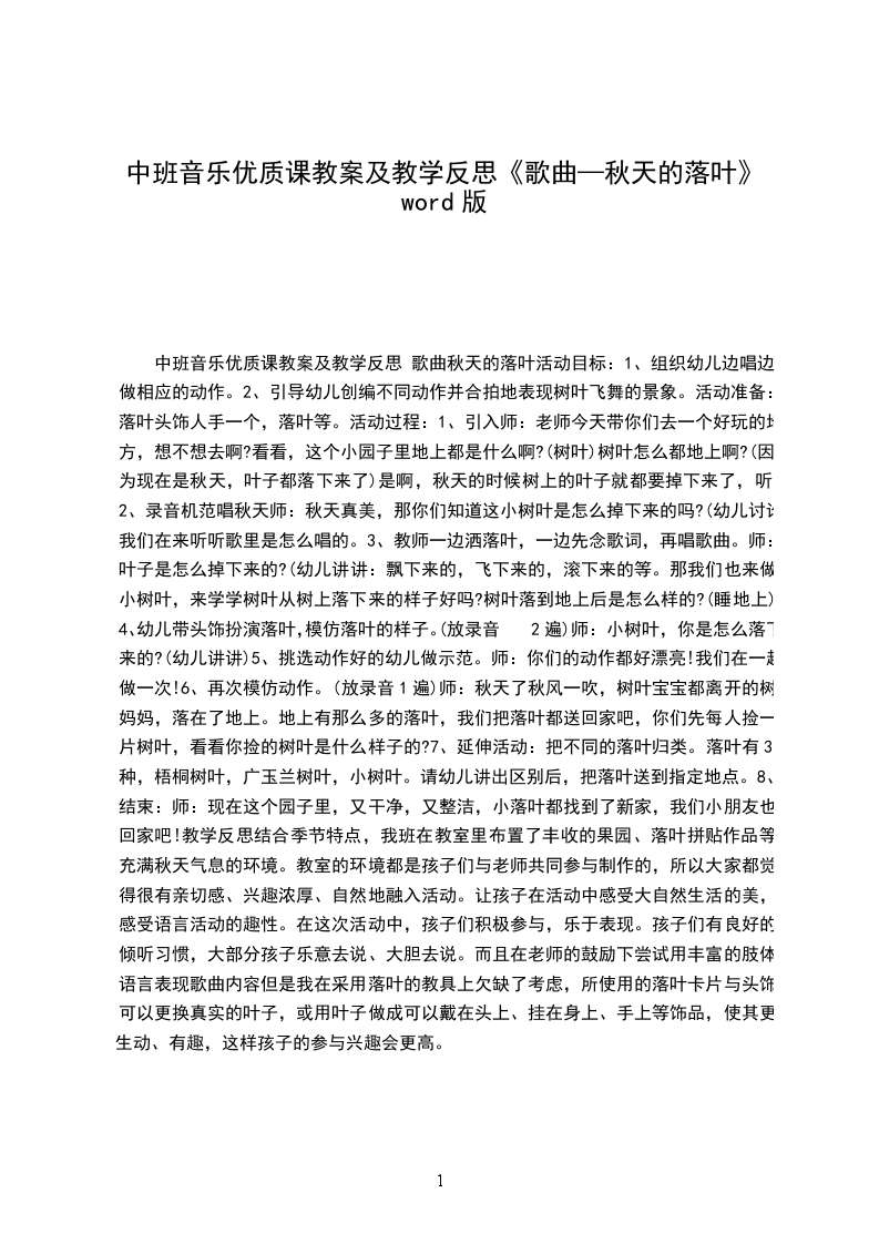 (一)复习歌曲《小树叶》《秋天》能较准确地唱出附点音符并鼓励幼儿用连贯、优美、适中的声音大胆练习对唱。