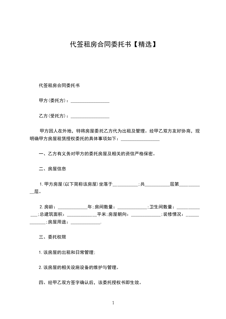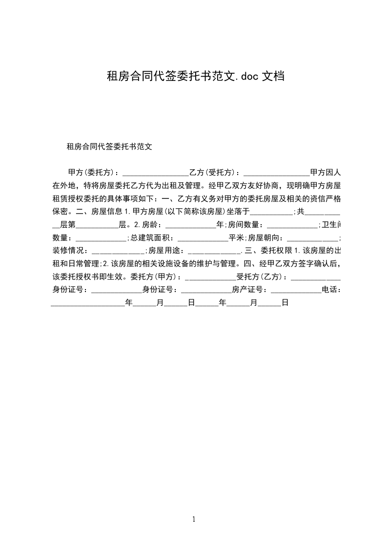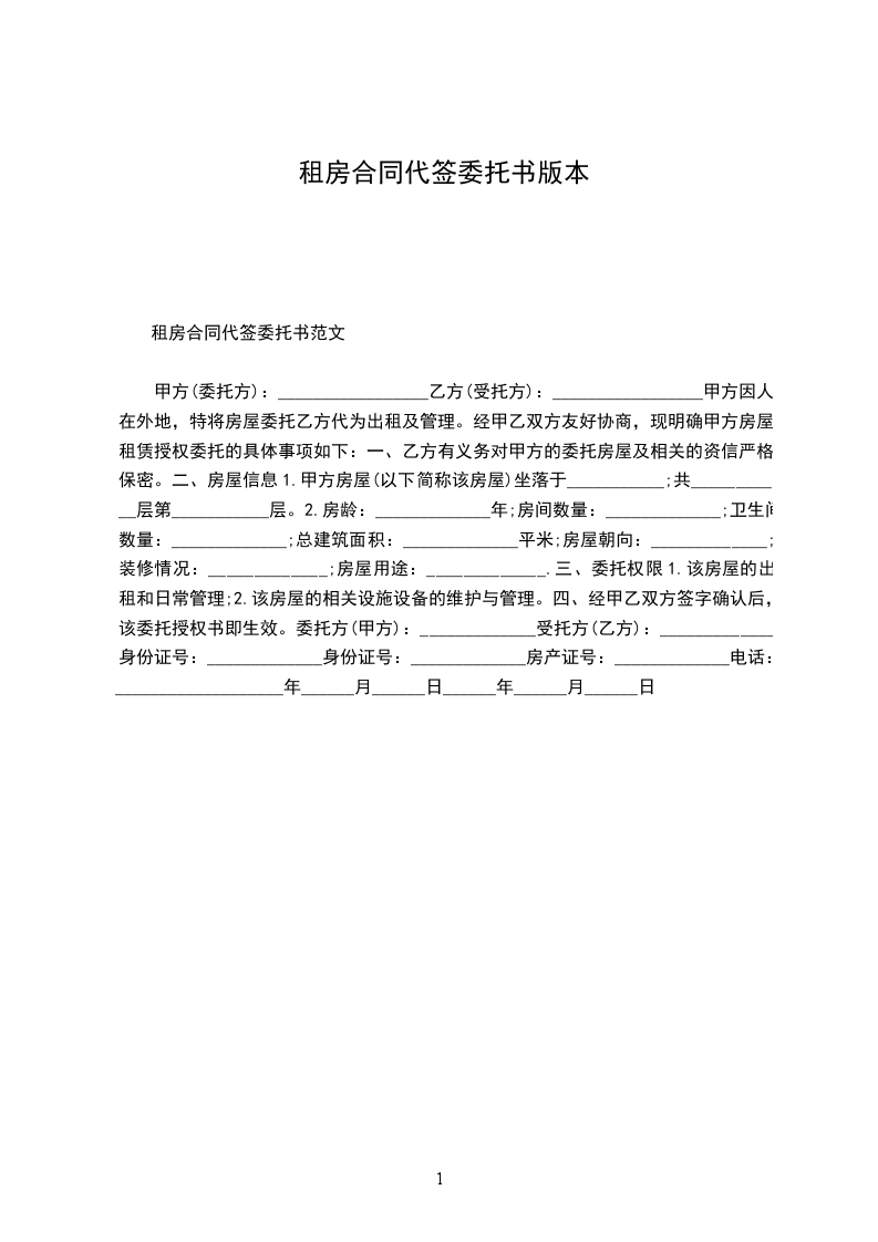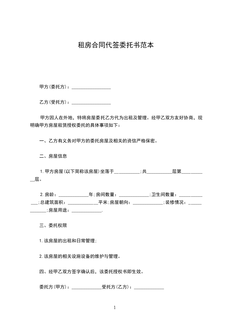 甲方因人在外地,特将房屋委托乙方代为出租及管理。经甲乙双方友好协商,现明确甲方房屋租赁授权委托的具体事项如下: