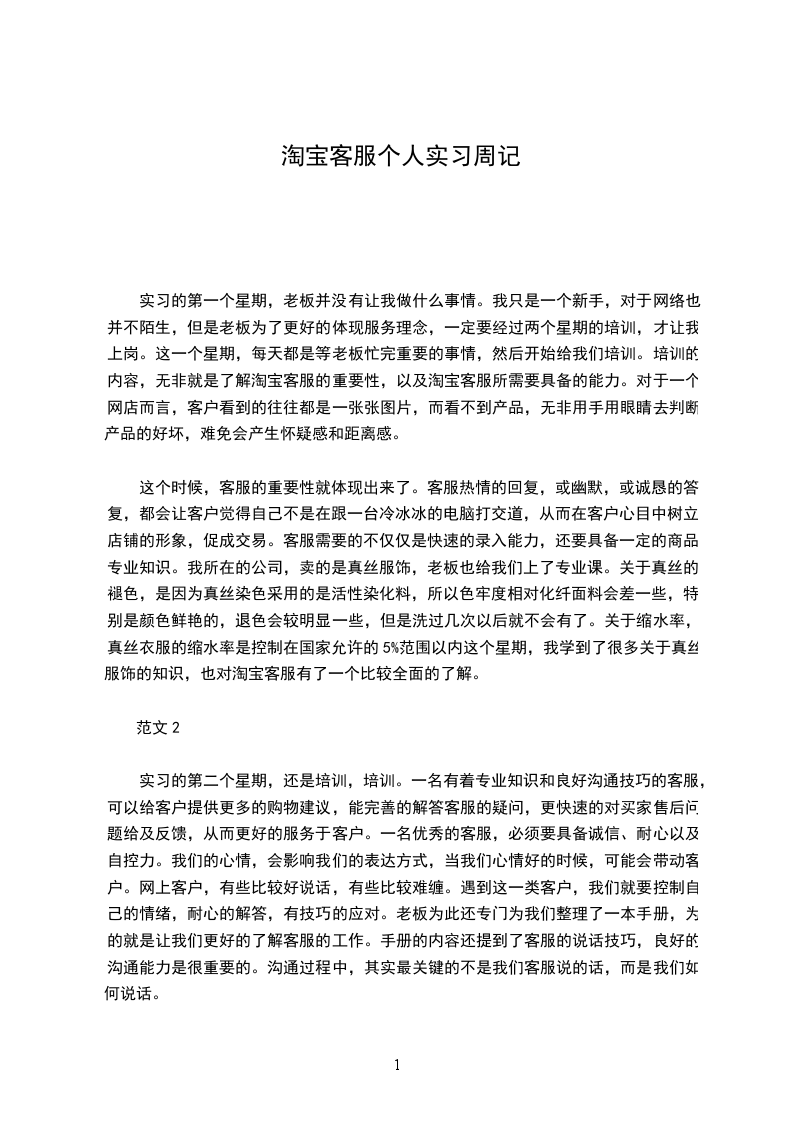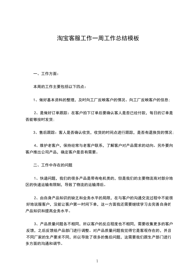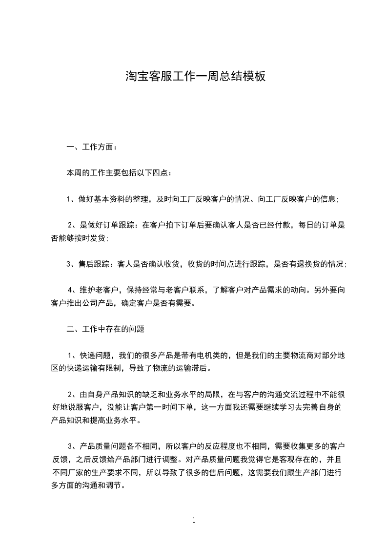 淘宝客服工作一周工作总结模板