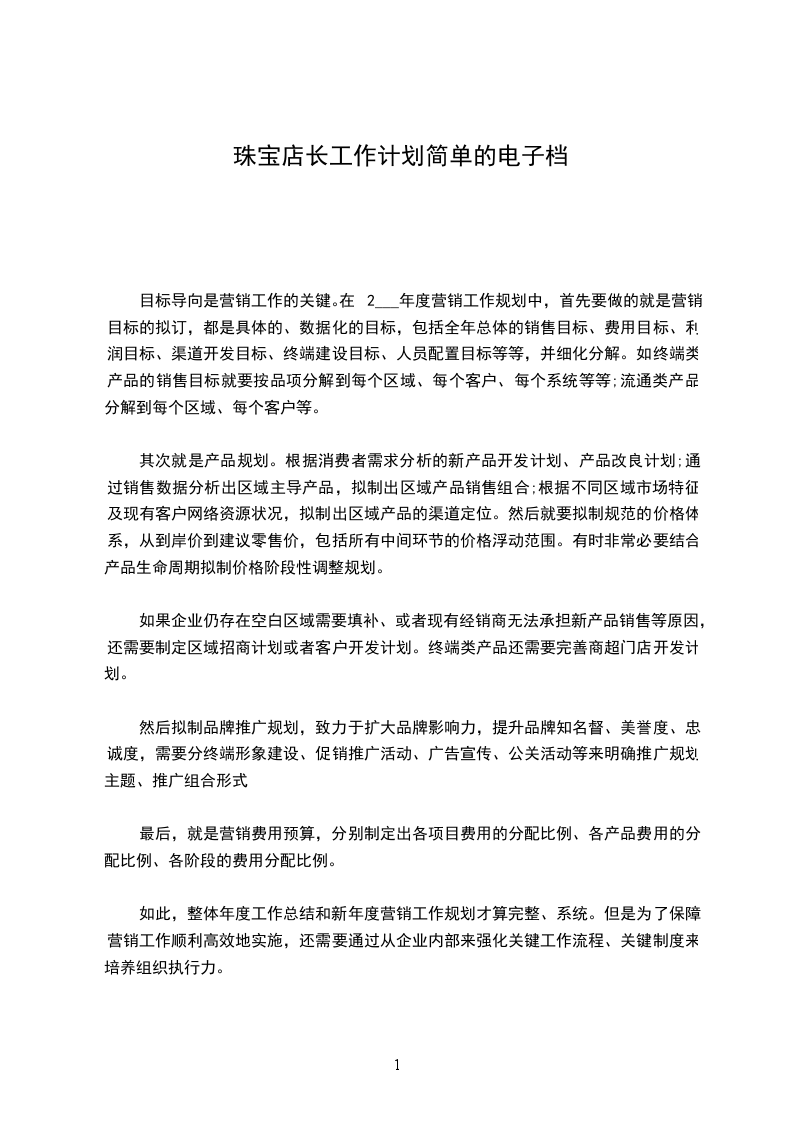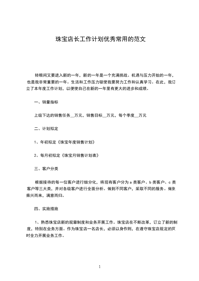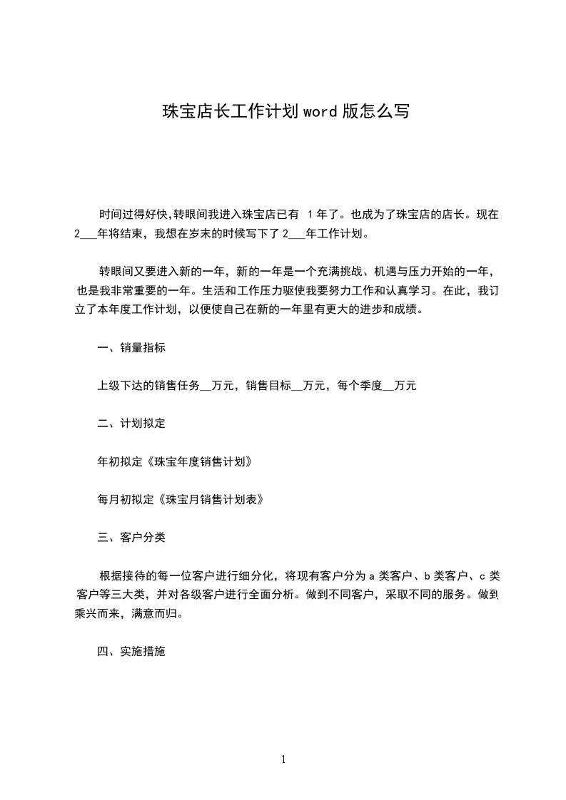 时间过得好快,转眼间我进入珠宝店已有1年了。也成为了珠宝店的店长。现在20__年将结束,我想在岁末的时候写下了20__年工作计划。