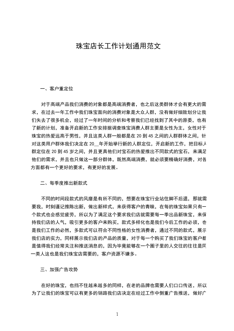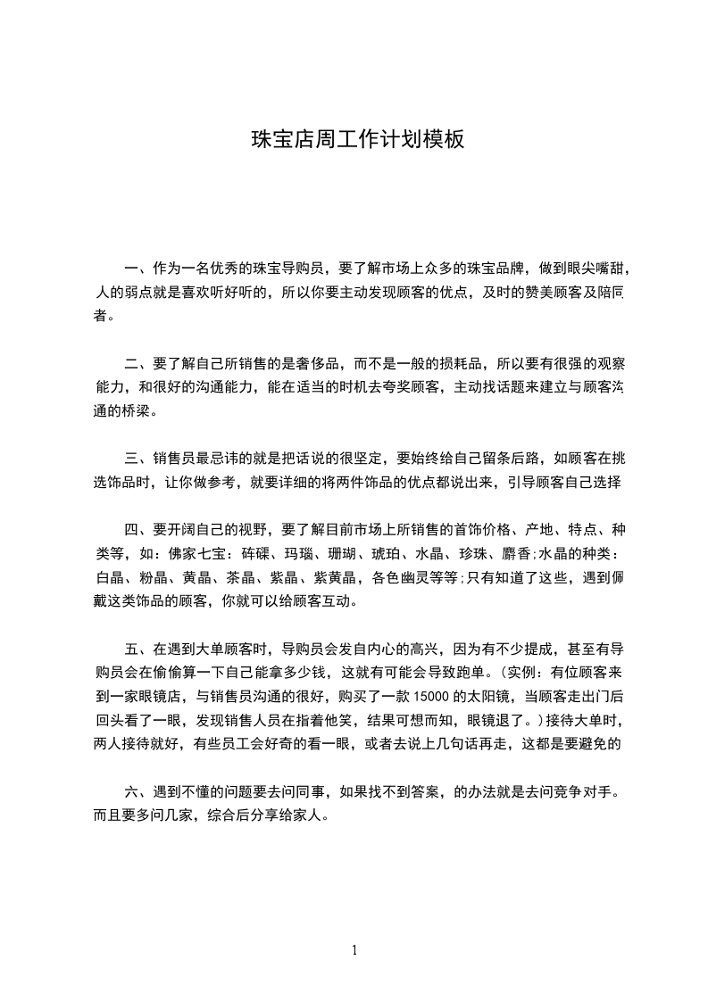 以上,是我对20__年的珠宝销售的工作计划,可能还很不成熟,希望领导指正。展望20__年,我会更加努力、认真负责地去做工作。相信自己会完成新的任务,能迎接20__年新的挑战。