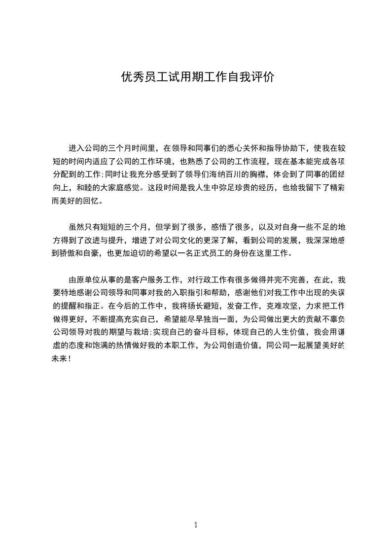 由原单位从事的是客户服务工作,对行政工作有很多做得并完不完善,在此,我要特地感谢公司领导和同事对我的入职指引和帮助,感谢他们对我工作中出现的失误的提醒和指正。在今后的工作中,我将扬长避短,发奋工作,克难攻坚,力求把工作做得更好,不断提高充实自己,希望能尽早独当一面,为公司做出更大的贡献不辜负公司领导对我的期望与栽培;实现自己的奋斗目标,体现自己的人生价值,我会用谦虚的态度和饱满的热情做好我的本职工作,为公司创造价值,同公司一起展望美好的未来!