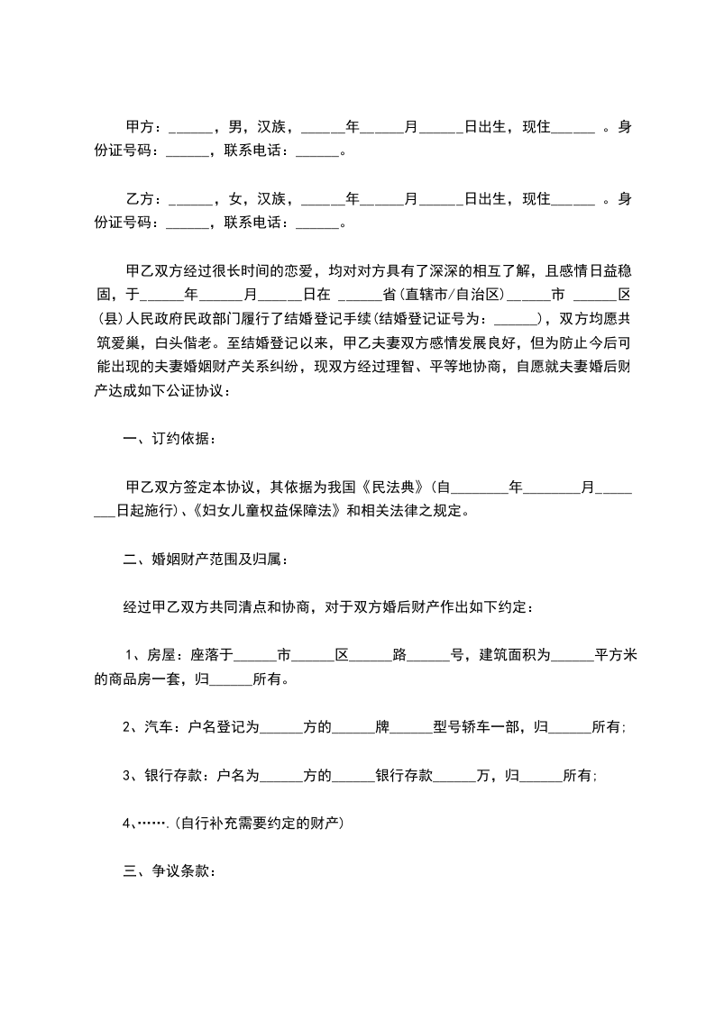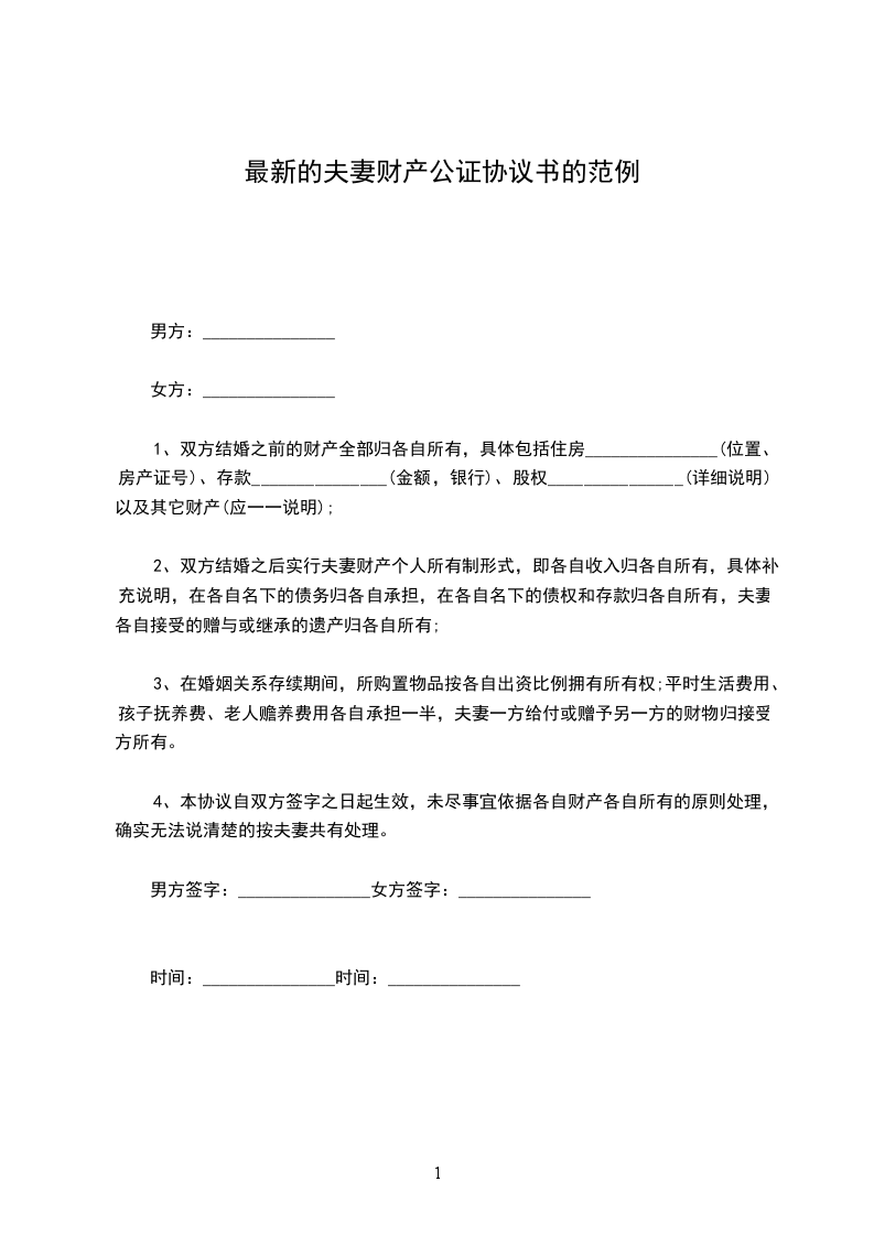 最新夫妻财产公证协议书范例