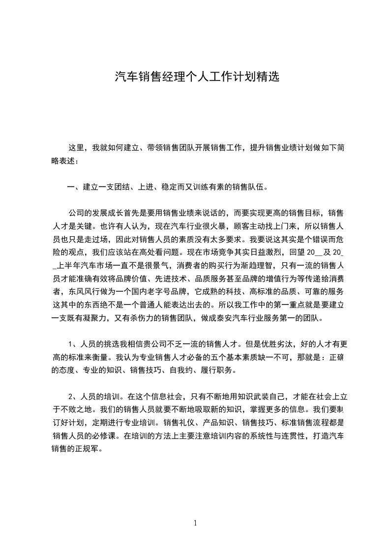 公司的发展成长首先是要用销售业绩来说话的,而要实现更高的销售目标,销售人才是关键。也许有人认为,现在汽车行业很火暴,顾客主动找上门来,所以销售人员也只是走过场,因此对销售人员的素质没有太多要求。我要说这其实是个错误而危险的观点,我们应该站在高处看问题。现在市场竞争其实日益激烈,回望20__及20__上半年汽车市场一直不是很景气,消费者的购买行为渐趋理智,只有一流的销售人员才能准确有效将品牌价值、先进技术、品质服务甚至品牌的增值行为等传递给消费者,东风风行做为一个国内老字号品牌,它成熟的科技、高标准的品质、可靠的服务。这其中的东西绝不是一个普通人能表达出去的。所以我工作中的第一重点就是要建立一支既有凝聚力,又有杀伤力的销售团队,做成泰安汽车行业服务第一的团队。
